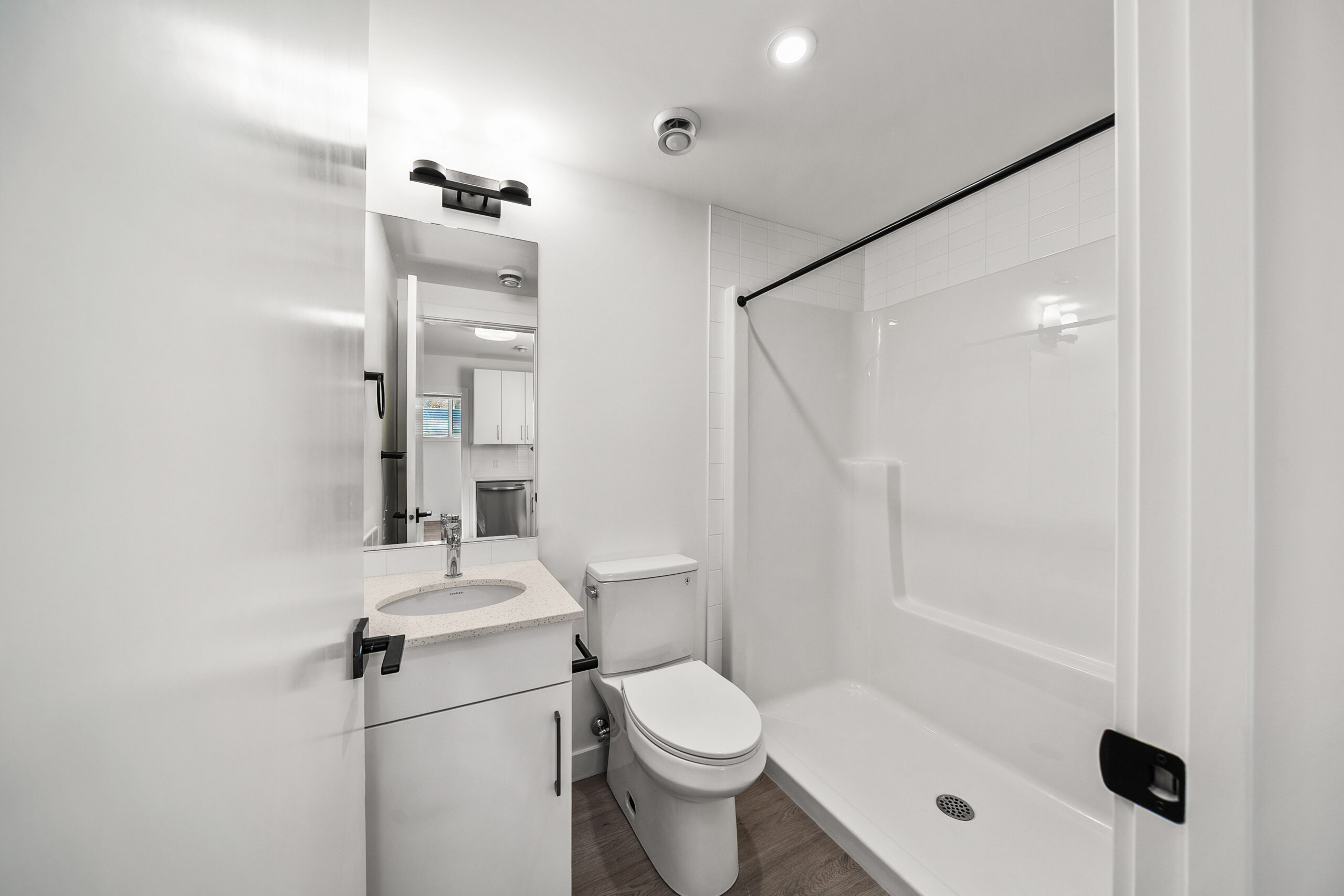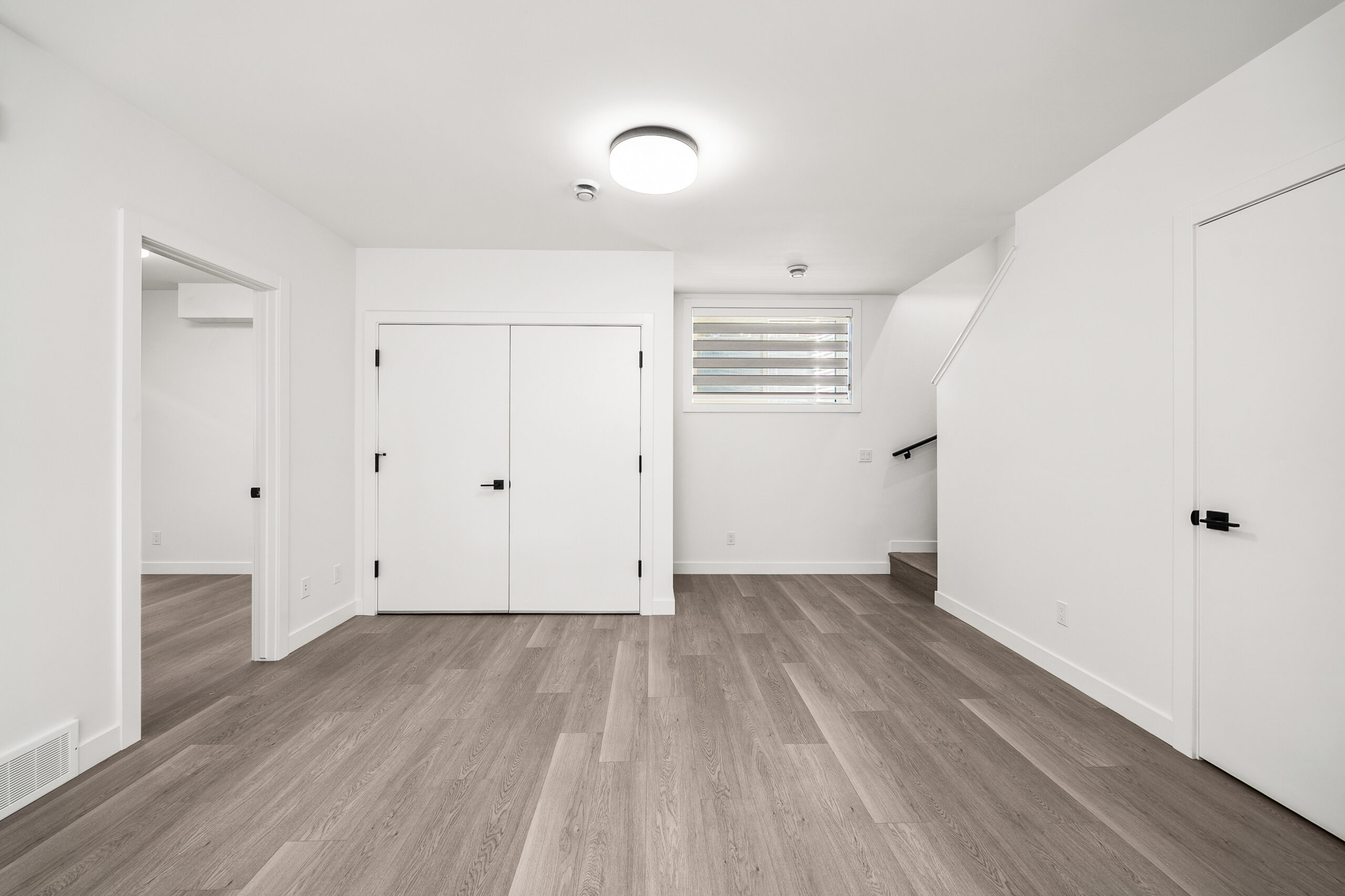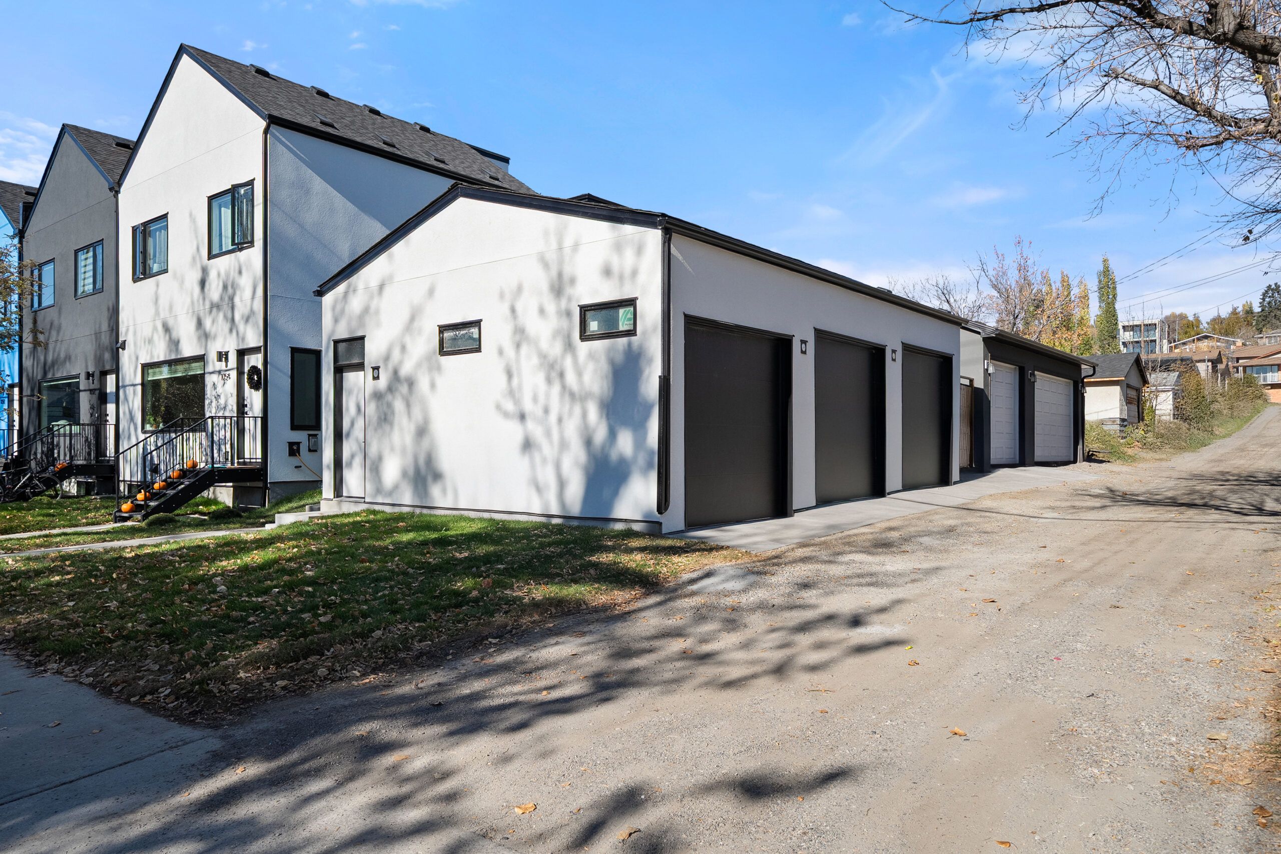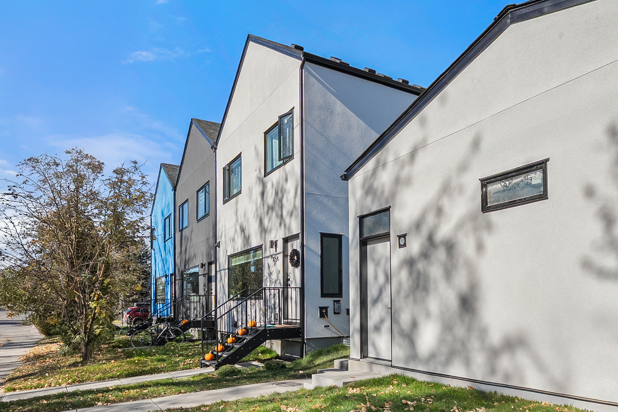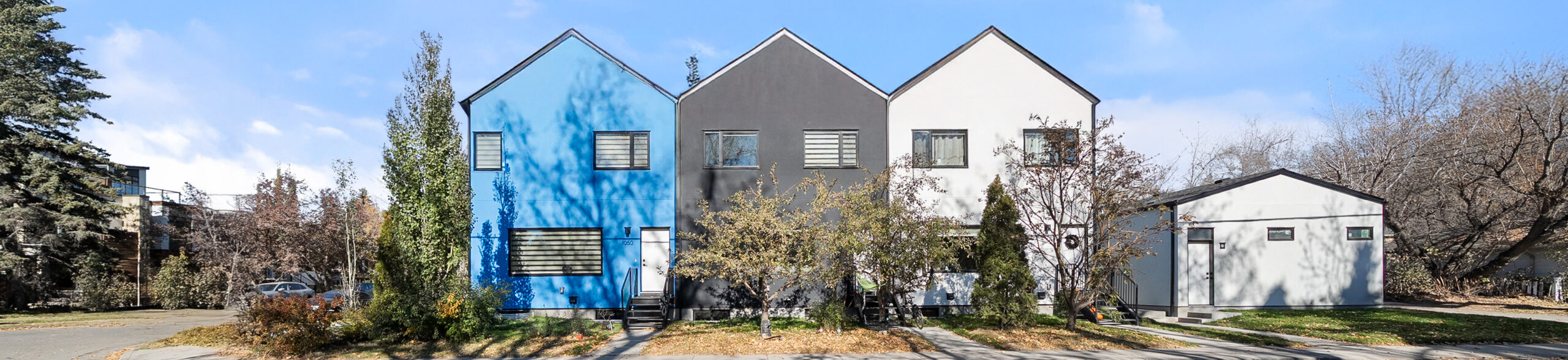 This row townhome project started with a friend’s vision for inner city density and housing diversity. As an urban planner by training and trade, the client purchased an inner-city corner lot with the dream of creating more land efficiency by adding more homes to a single-family lot. The small, single-family storey-and-a-half was revitalized into five modern, energy-efficient homes. Designed to balance function, affordability and livability, the project features three thoughtfully designed two-storey main floor plans with two lower level two-bedroom secondary suites, and three single-stall garage parking spaces. The architecture is fashioned after Scandinavian–style focusing on simplicity and minimalism. The exterior palette includes a personal touch, incorporating the colours of the Estonian flag — a nod to the family’s favourite sports team.